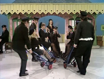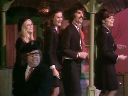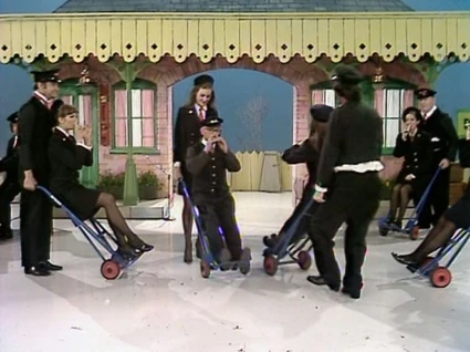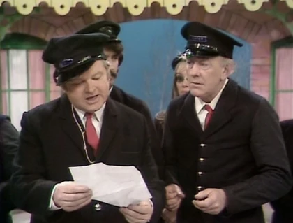 The Dalton Abbott Railway Porter Choir is a train station-motif musical choir complete with outfits based on train uniforms. The members are Ted Crumble (Benny Hill), Bob Todd, Henry McGee, Jackie Wright, Jon Jon Keefe, Jim Tyson, Trudi Van Doorn, Sue Bond (in her last "Benny Hill" appearance), Lee Gibson, and Marian Davies, Maggie Stredder and Gloria George of The Lady Birds.